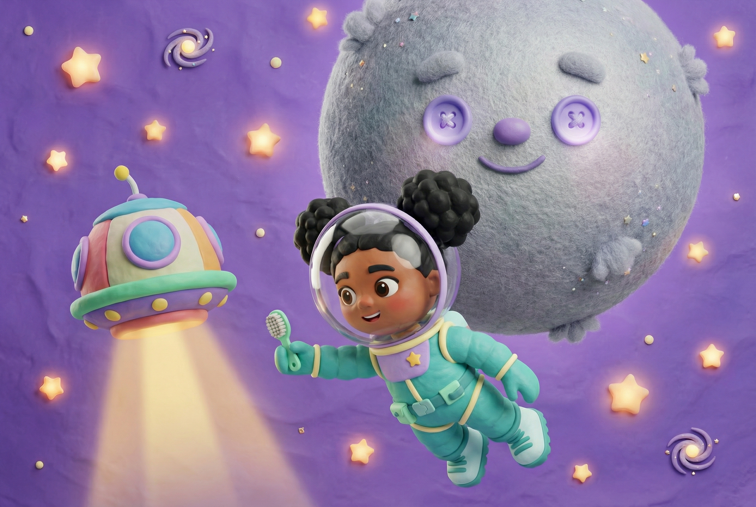 Luz explores a purring, fuzzy planet and helps it stop itching. Gentle belly rubs and kind listening turn space travel into cozy friendship.